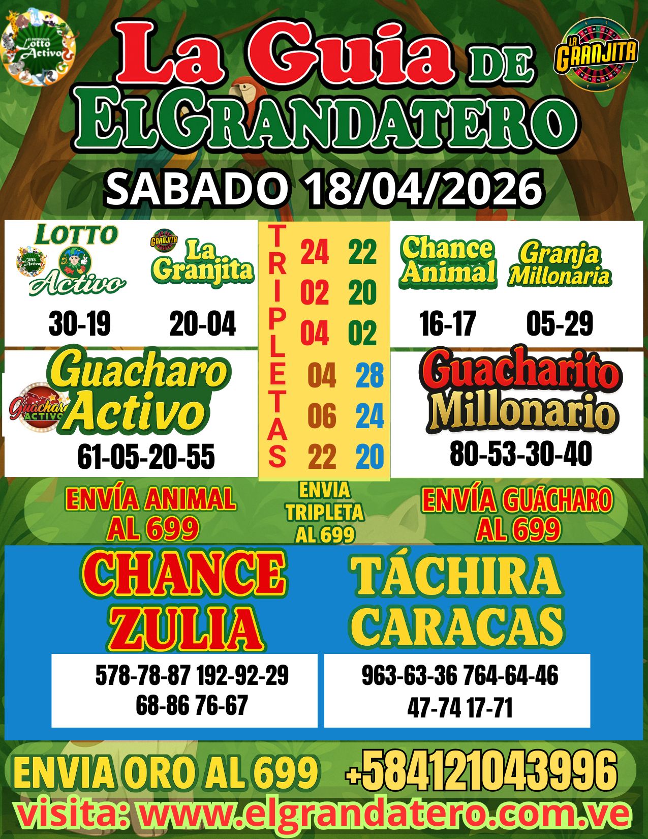 Triples gratis, terminales fuertes y datos recomendados para Chance, Zulia, Táchira y Caracas. Información publicada por elgrandatero.