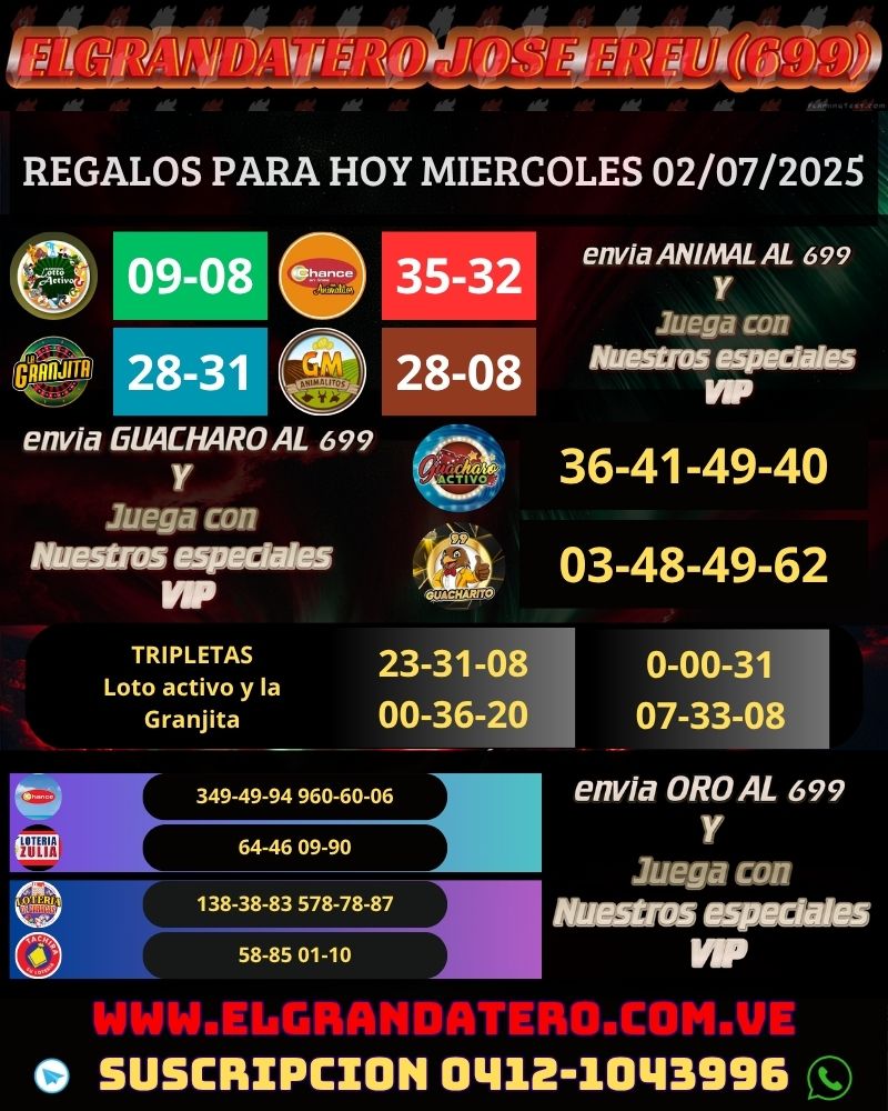 #️⃣ #ELGRANDATERO #LoteríasHoy #TipsDeLotería #PronósticosVIP #Grandatero #DatosGanadores #Venezuela #Barquisimeto #Caracas #Loterías.
