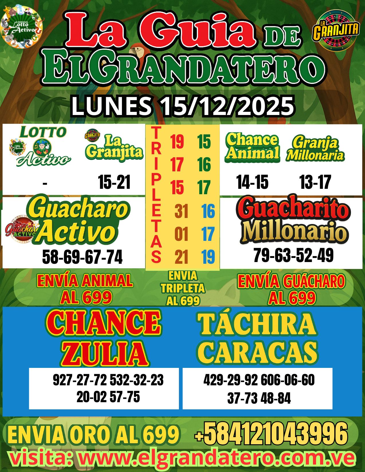🎲 *2 triples diarios para Chance y Zulia*